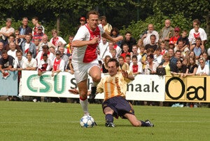 De jaarlijkse Open Dag van Ajax is dit jaar voorzien van perfecte omstandigheden: de zon zorgt voor een aangename temperatuur en met het oog op de presentatie van Ajax 1 zijn alle roodwitte supporters in een opperbeste stemming. Voordat het eerste in de ArenA aantreedt tegen de nieuwe profclub FC Omniworld, mag Lucky Ajax de fans op de Toekomst vast opwarmen met een wedstrijd tegen een prominententeam. Zaterdag jl. moest Lucky Ajax nog flink aan de bak tegen Fortuna Wormerveer, vandaag staat een verzameling van sponsors en oud-sporters op het veld die nog niet eerder met elkaar hebben samengespeeld. Oud-tennisser Jan Siemerink blijkt een echte linkspoot, voormalig volleyballer Bas van de Goor stuurt als laatste man zijn team aan en sportjournalist Humberto Tan raast als ijverige buitenspeler langs de lijnen van het hoofdveld.