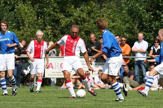 THEO raakt nog de paal en heeft in een enkele uitbraak vaak net te veel tijd nodig. Bovendien staat het trio Kreek, Van der Hengst en Meutstege de 2e helft als een huis. Dennis Nederlof heeft verder een passend antwoord op de afstandsschoten van de THEO-spelers. In de laatste tien minuten houdt Ajax behoorlijk huis en loopt het uit naar 3-7. Muller maakt na een prachtige pass van Kreek de 3-6 met een wonderschoon lobje, buitenkant voet. De 3-7 is een typische Bosman-goal; uit een hoekschop kopt hij de bal hard en gekruist binnen. Na afloop overheerst tevredenheid bij de gastheren en de gasten. Een leuke pot voetbal in een prima entourage. Met livemuziek en een biertje in de hand kunnen de bezoekers napraten over de wedstrijd. Omdat de wedstrijd Ajax-PSV al om 20.00 begint gaan veel Ajacieden direct na de wedstrijd als een speer richting ArenA. Een aantal spelers blijft wat langer en geniet van de Drentse gastvrijheid.
